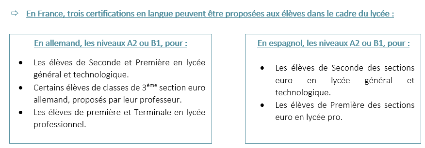 Dans la pratique, lors des candidatures aux établissements supérieurs en cours de Terminale, ce sera un réel atout de pouvoir attester d’un niveau avéré dans les différentes langues (l’intérêt étant bien sûr d’avoir les résultats de cette certification AVANT la clôture des dossiers Parcoursup début avril)
