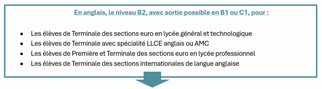 En pratique, tous les élèves concernés peuvent passer gratuitement les épreuves du CEC – Cambridge English Certificate, en Terminale, afin de valider le niveau B2 (ou B1 ou C1, selon leurs résultats).